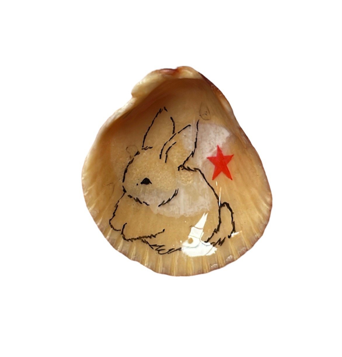 Charming Bunny on the most beautiful orange hue shell. 16"-18" non tarnishing stainless steel necklace.