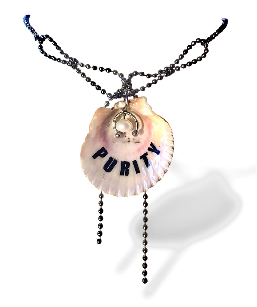 Purity seashell necklace with hidden bunnies, septum piercing, and pearl details <3